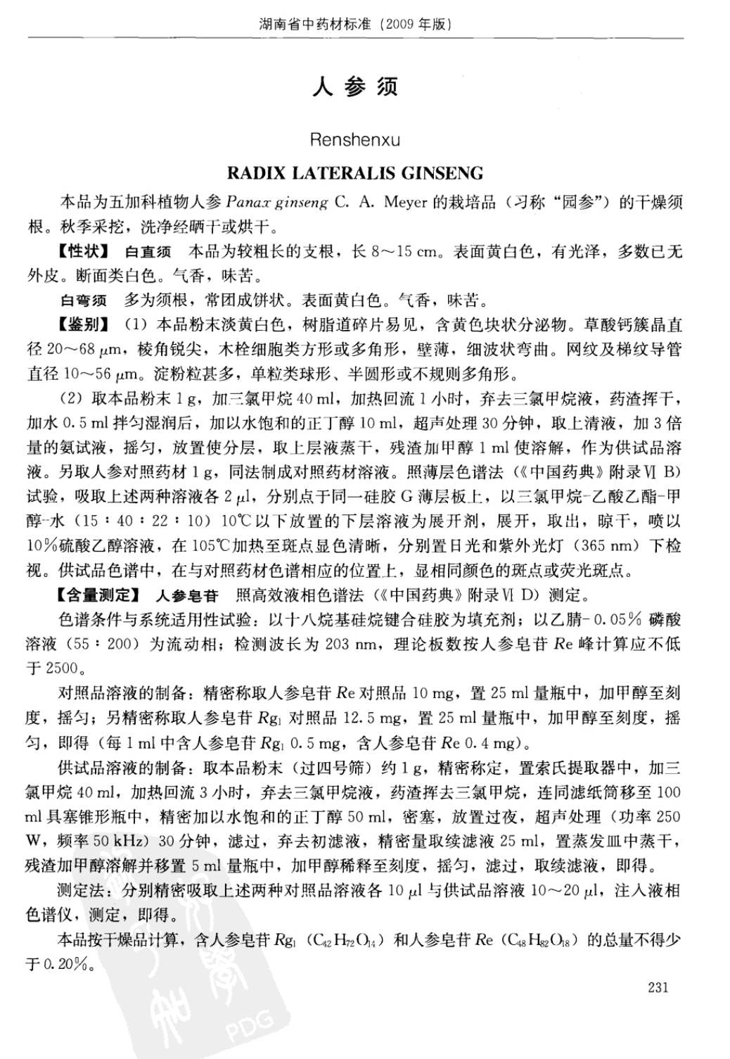 湖南省中药材质量标准 > 人参须