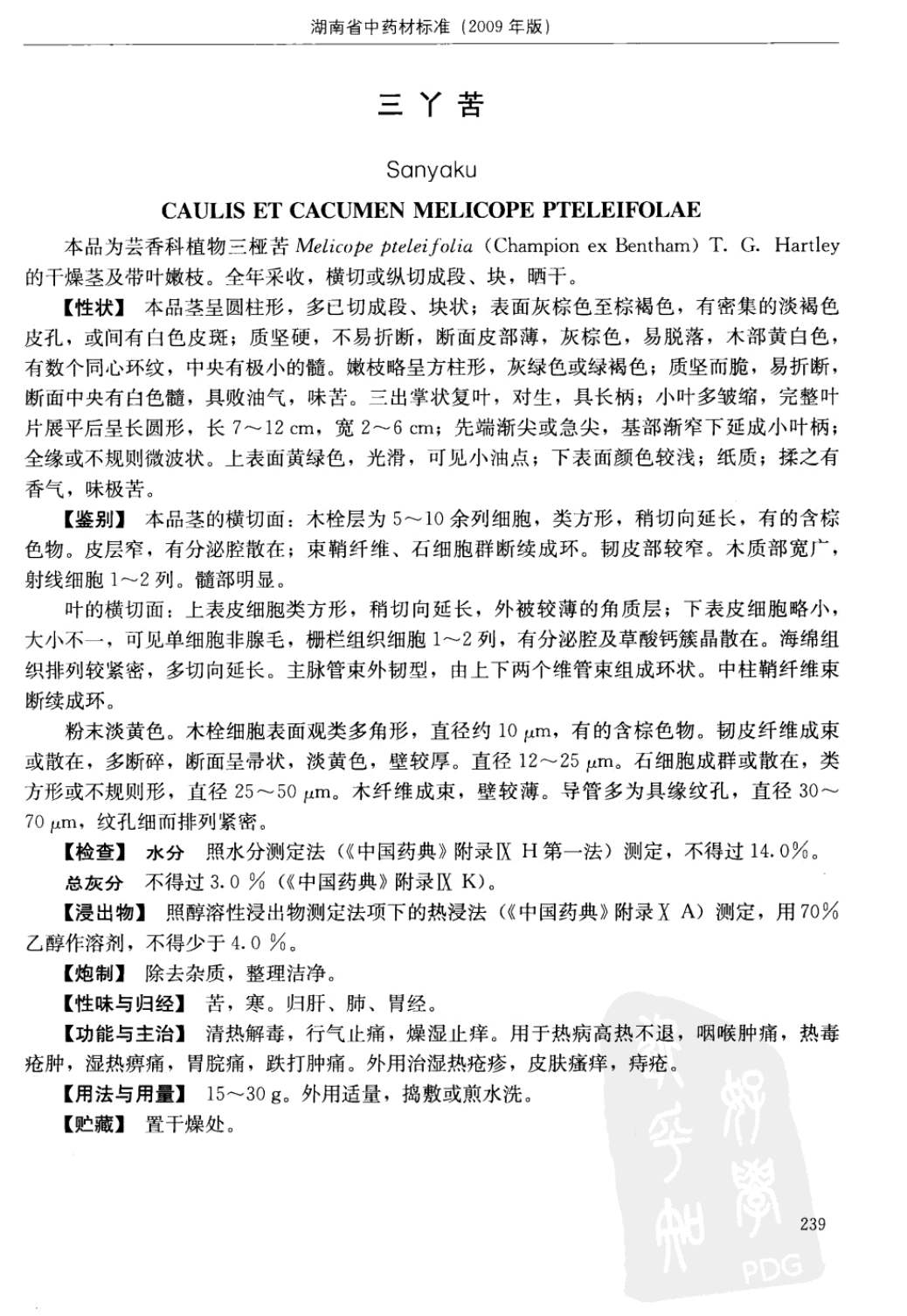 湖南省中药材质量标准 > 三丫苦