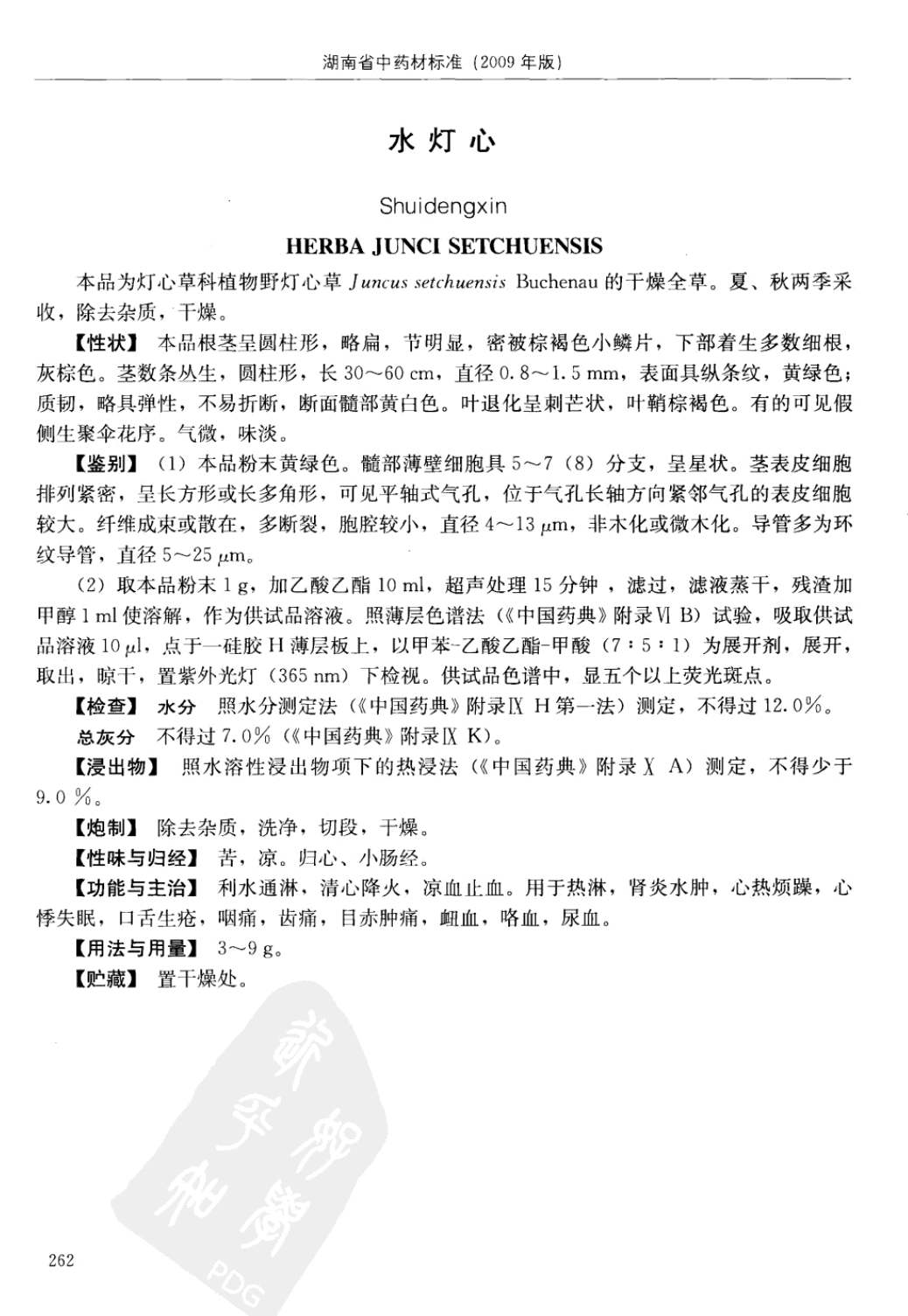 湖南省中药材质量标准 > 水灯心