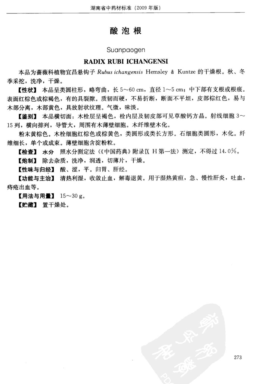 (湖南省中药材质量标准 - 2009年版)