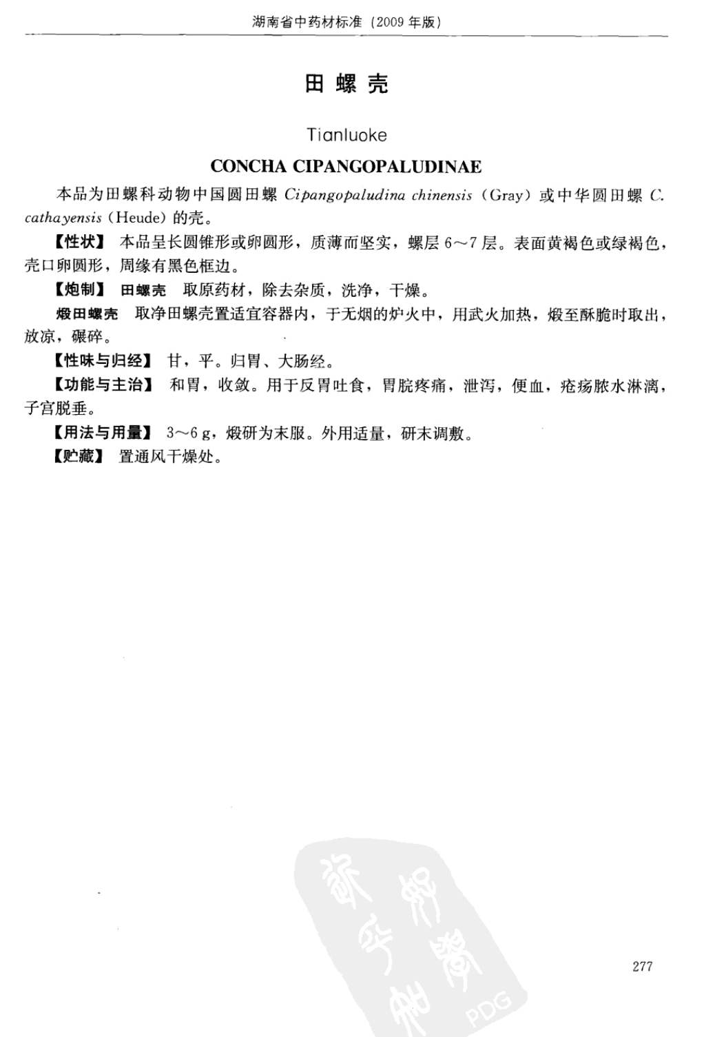 湖南省中药材质量标准 > 田螺壳