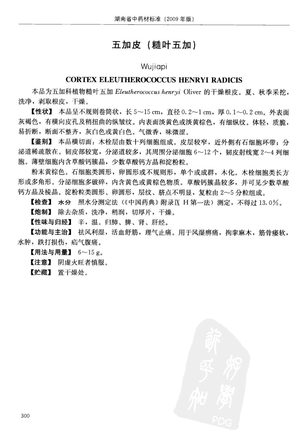 湖南省中药材质量标准 > 五加皮(糙叶五加)