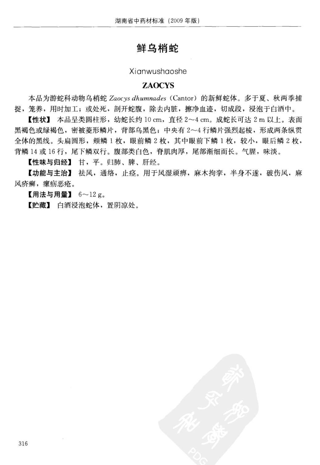 湖南省中药材质量标准 > 鲜乌梢蛇