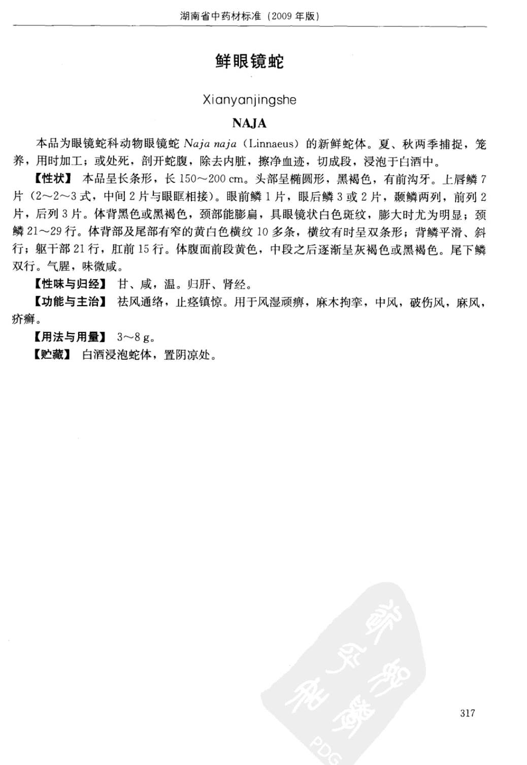 湖南省中药材质量标准 > 鲜眼镜蛇