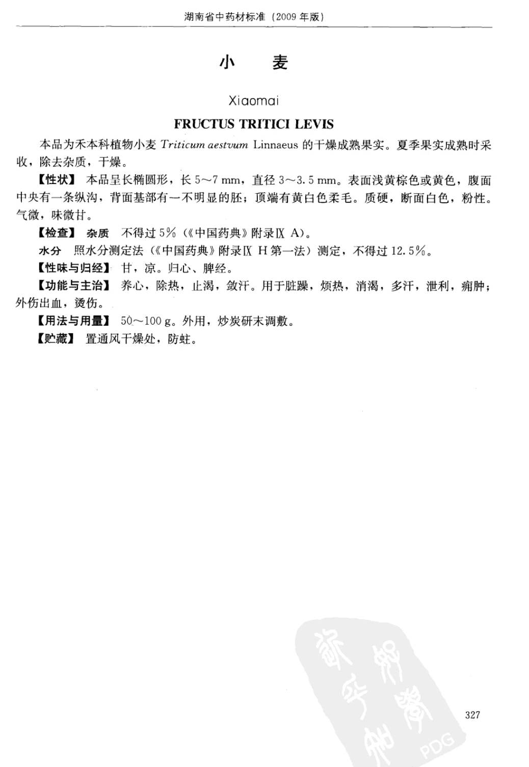 湖南省中药材质量标准 > 小麦