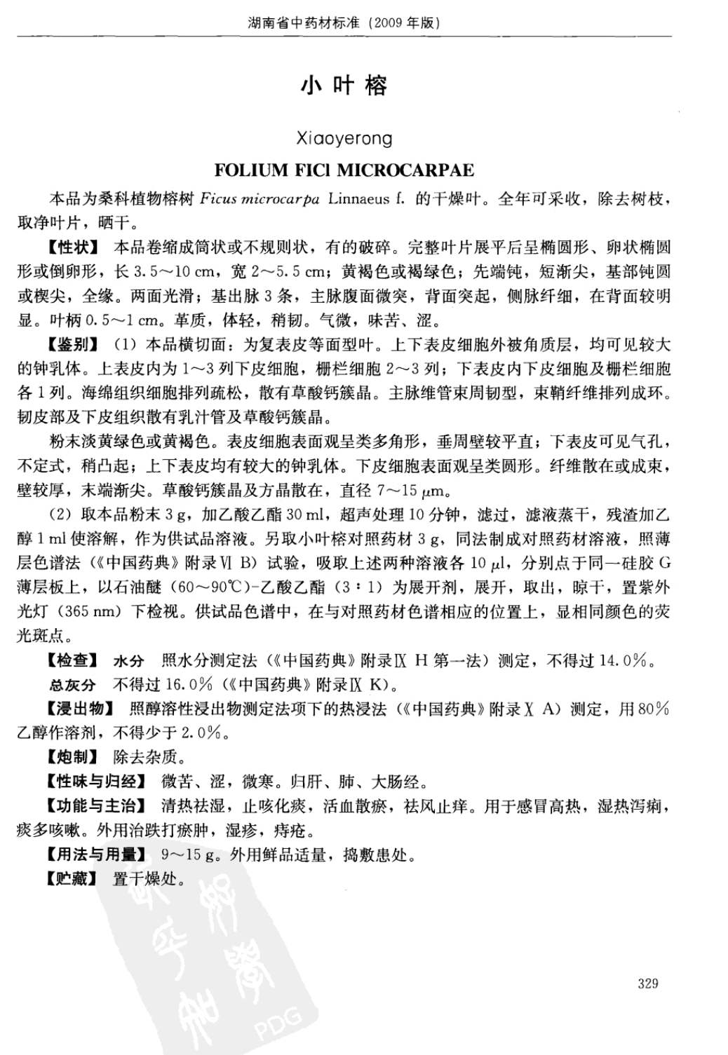 湖南省中药材质量标准 > 小叶榕