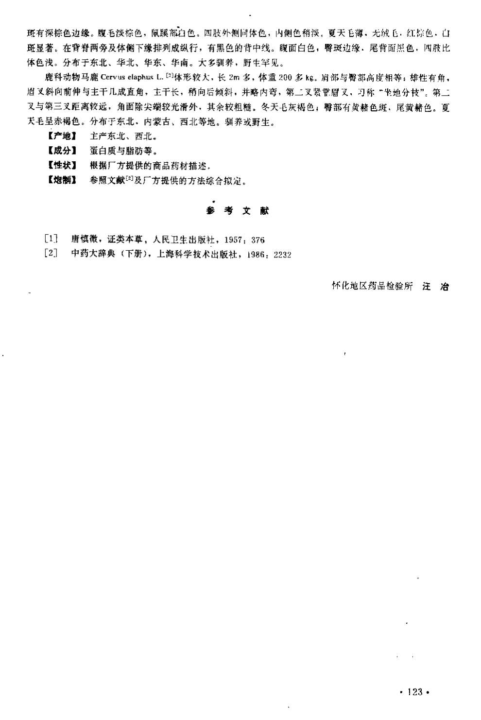 湖南省中药材质量标准 > 全鹿
