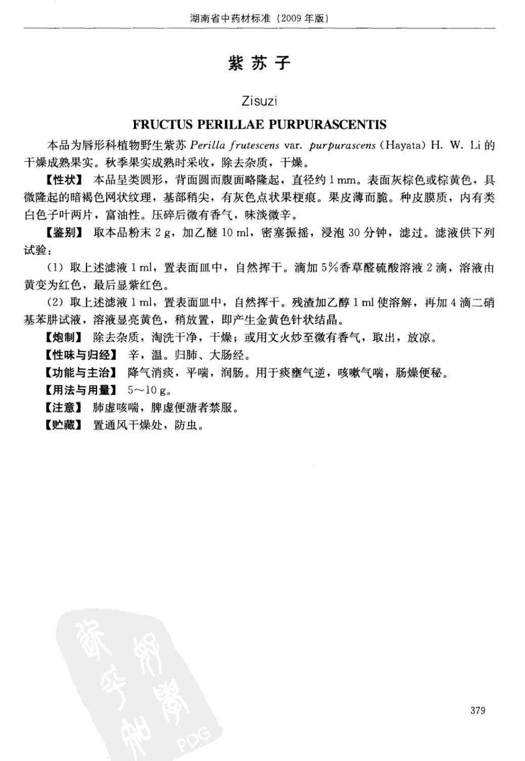 湖南省中药材质量标准 > 紫苏子