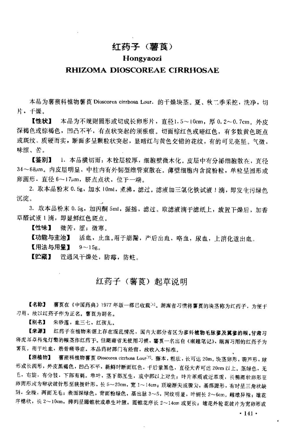湖南省中药材质量标准 > 红药子(薯莨)