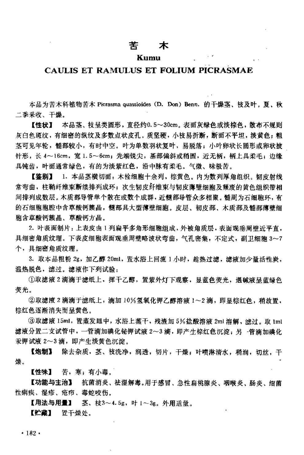 湖南省中药材质量标准 > 苦木