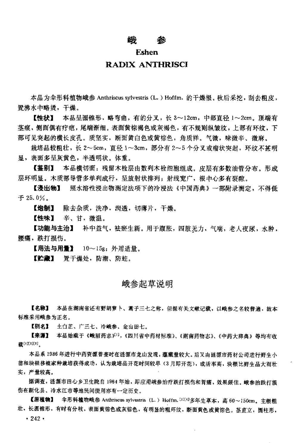 湖南省中药材质量标准 > 峨参
