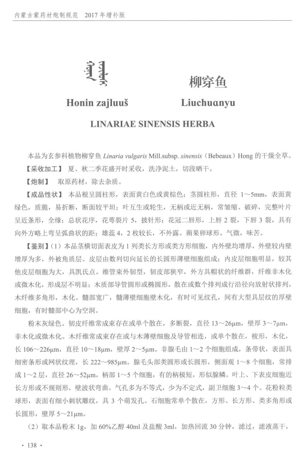 内蒙古蒙药材炮制规范 > 柳穿鱼