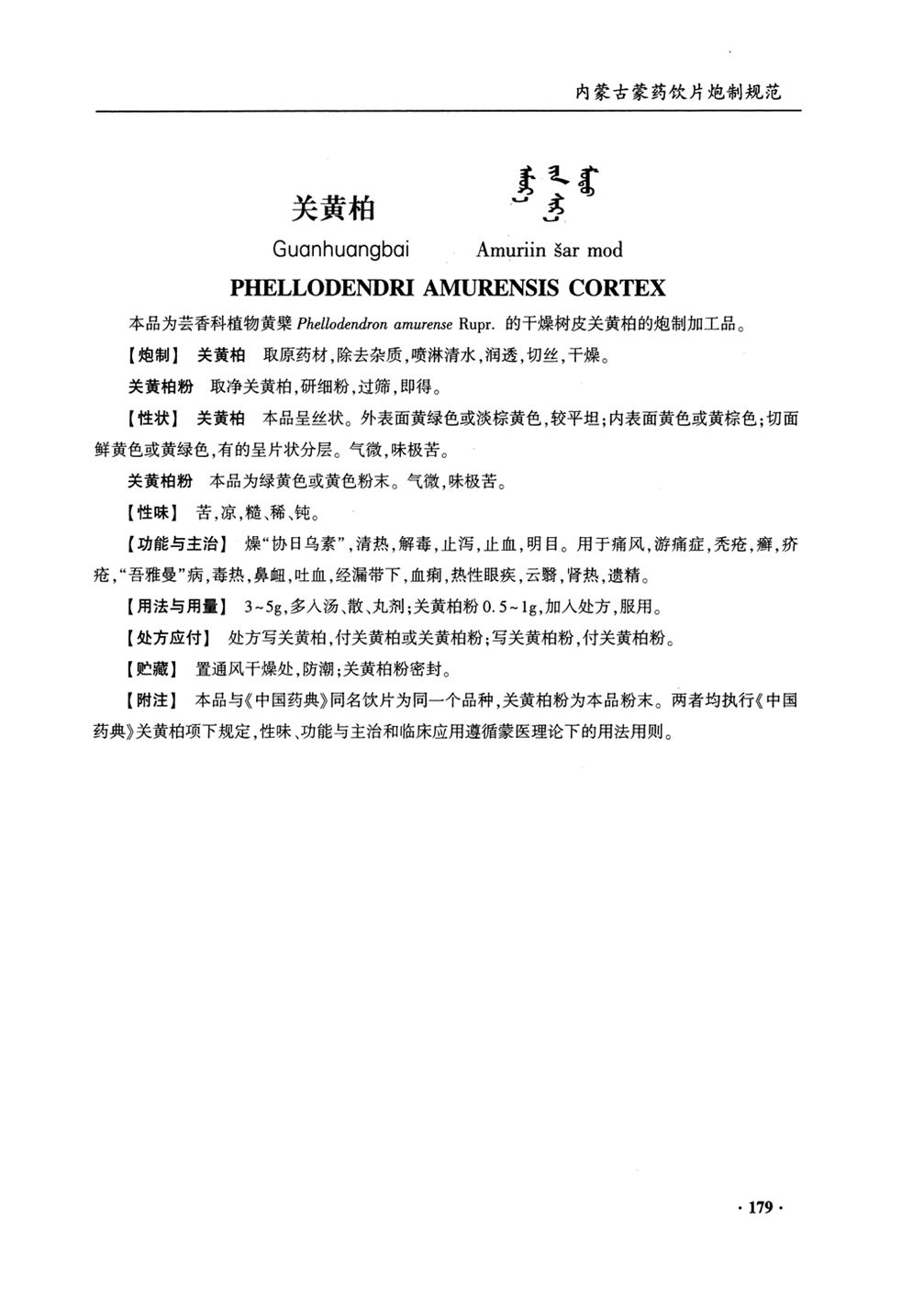 内蒙古蒙药饮片炮制规范(2020年版) > 关黄柏(关黄柏粉)