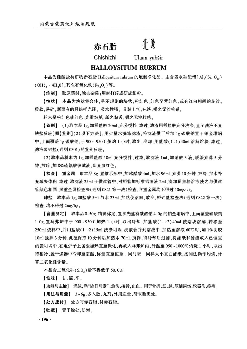 内蒙古蒙药饮片炮制规范(2020年版) > 赤石脂