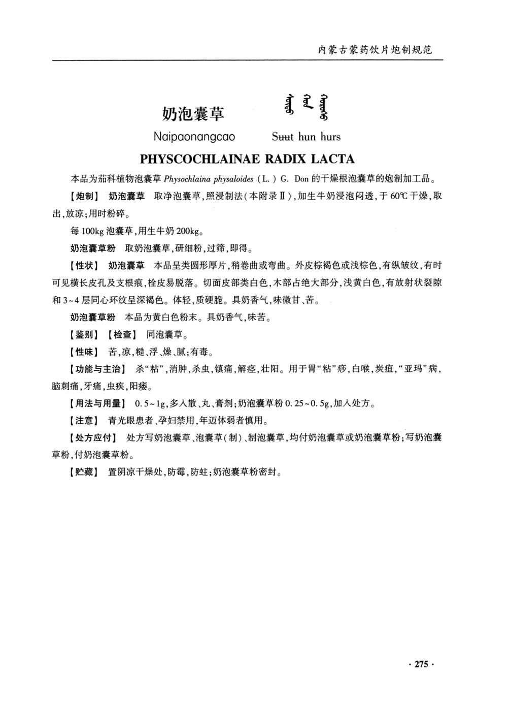 内蒙古蒙药饮片炮制规范(2020年版) > 奶泡囊草(奶泡囊草粉)
