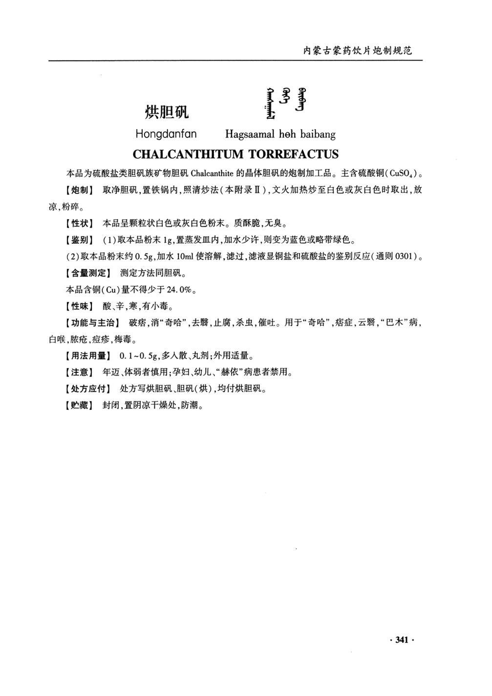 内蒙古蒙药饮片炮制规范(2020年版) > 烘胆矾
