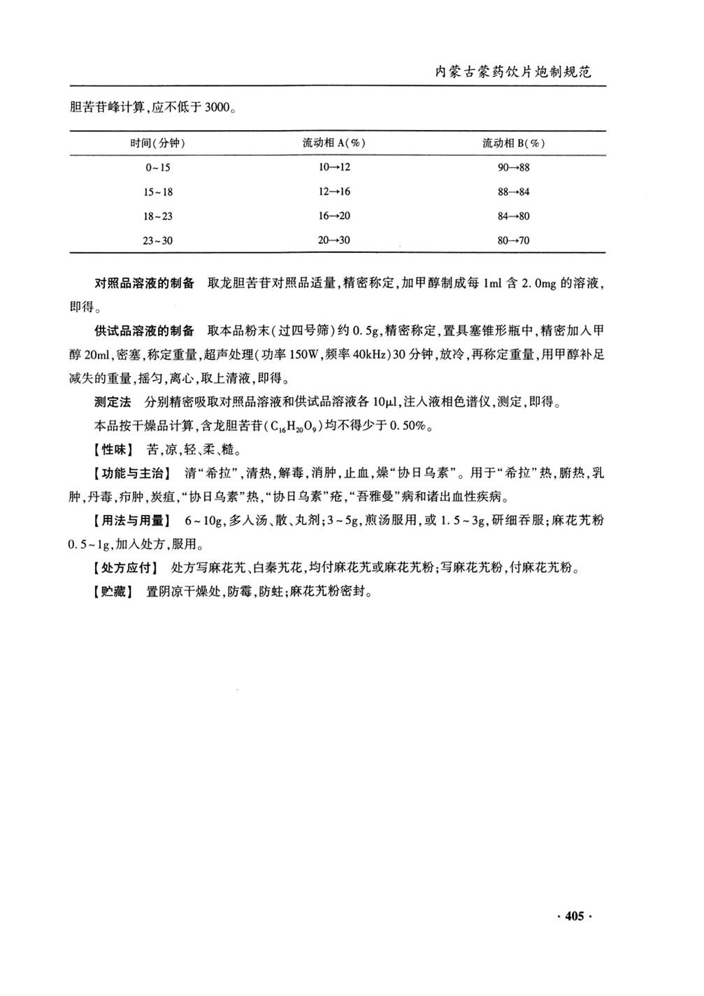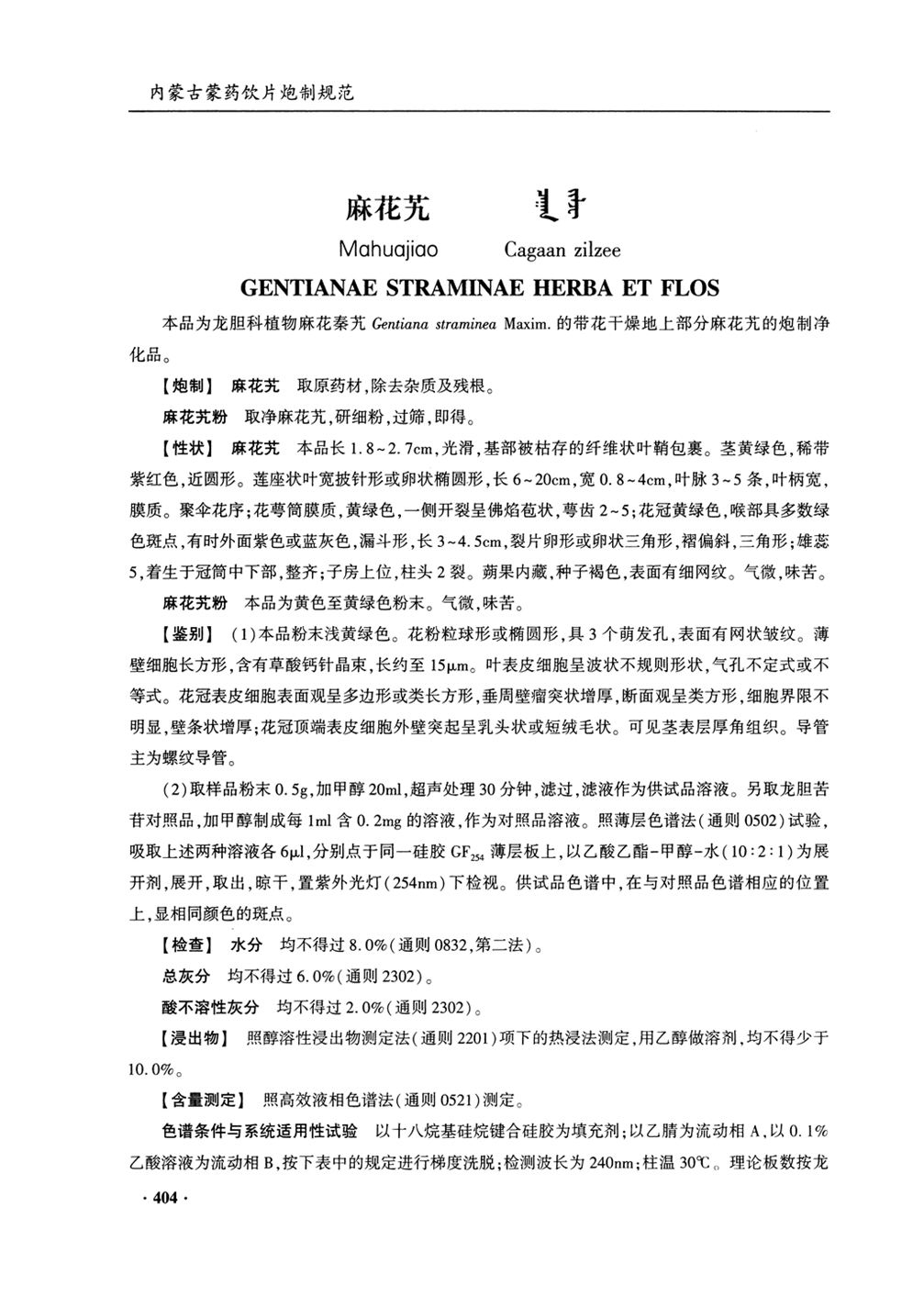 内蒙古蒙药饮片炮制规范(2020年版) > 麻花艽(麻花艽粉)