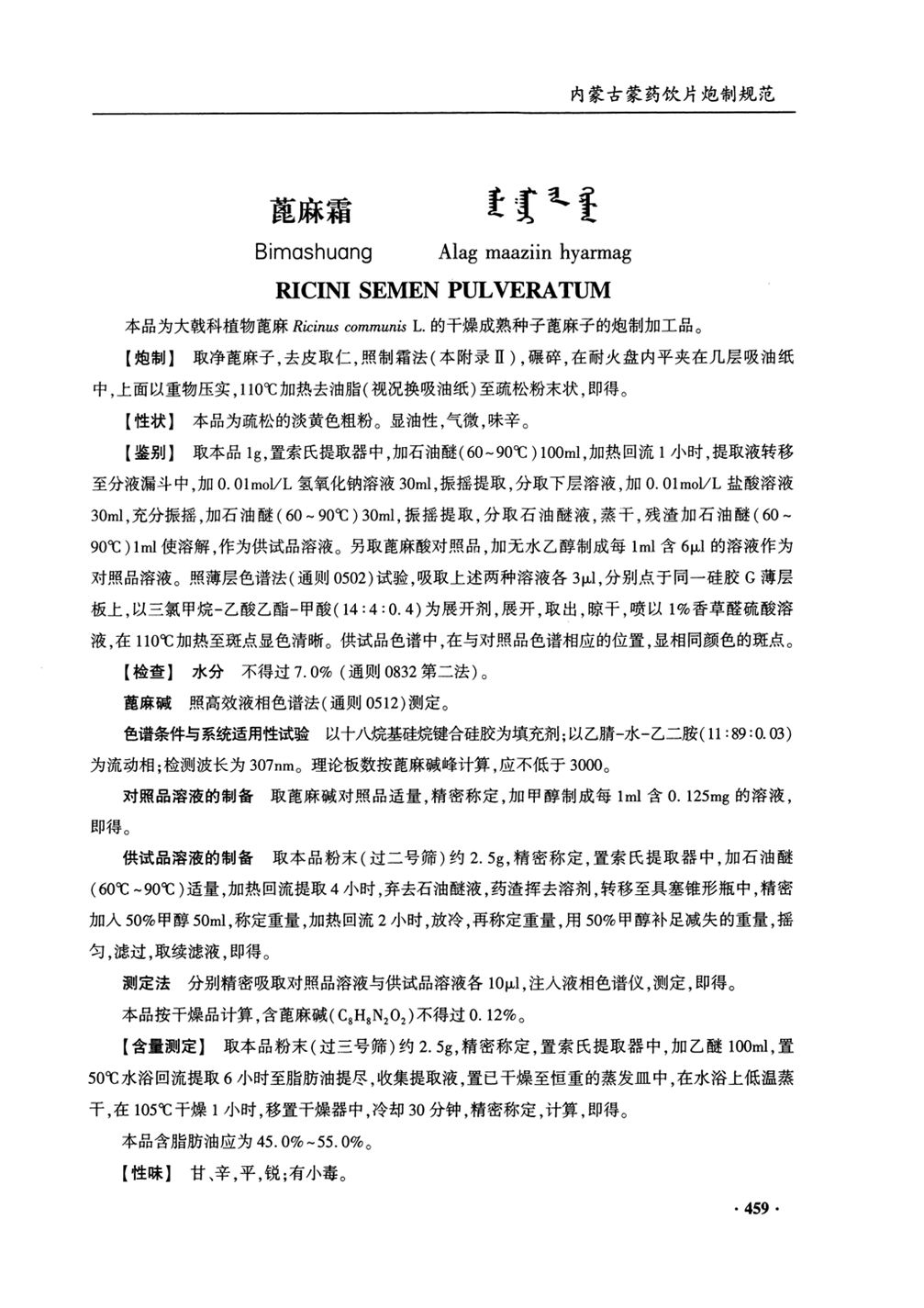 内蒙古蒙药饮片炮制规范(2020年版) > 蓖麻霜