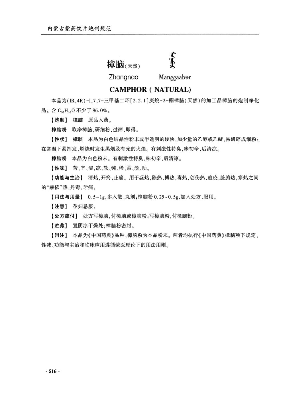 内蒙古蒙药饮片炮制规范(2020年版) > 樟脑(天然)(樟脑粉)
