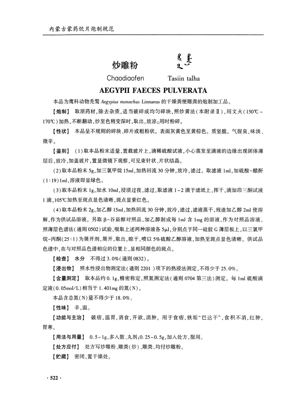 (内蒙古蒙药饮片炮制规范(2020年版) - 2020年版)
