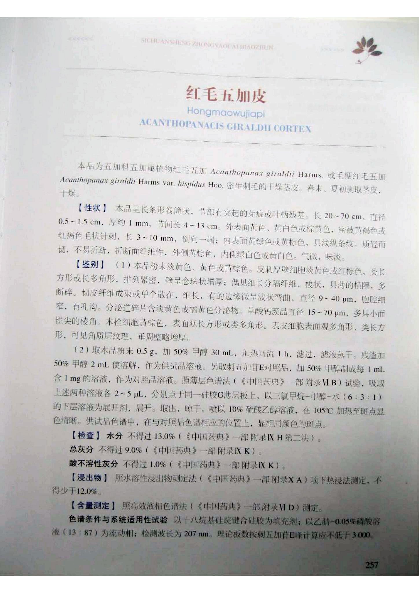 四川省中药材标准 > 红毛五加皮