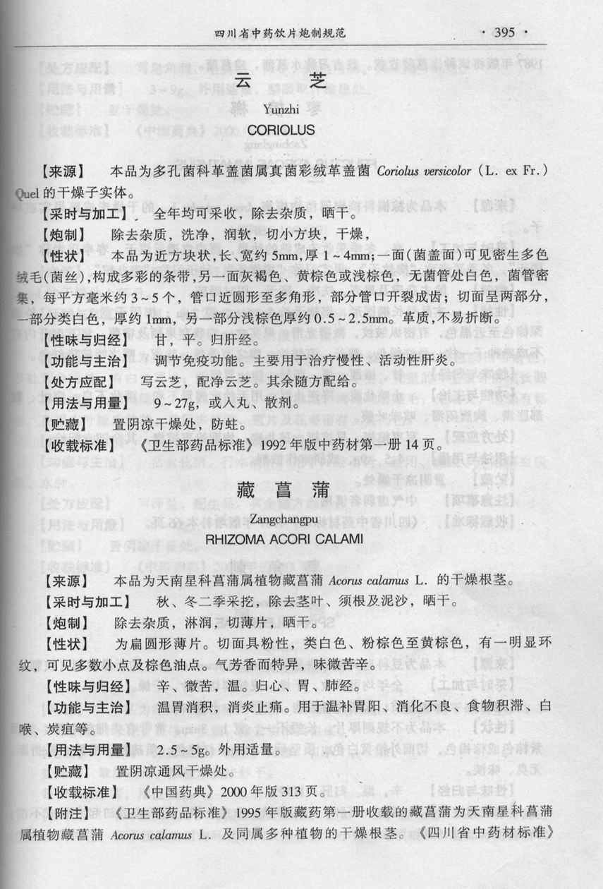 四川省中药饮片炮制规范(2002年版) > 云芝