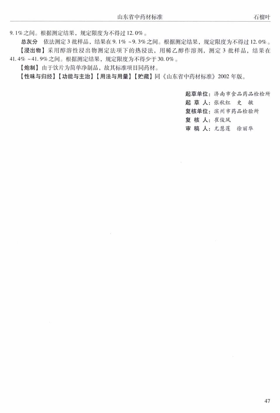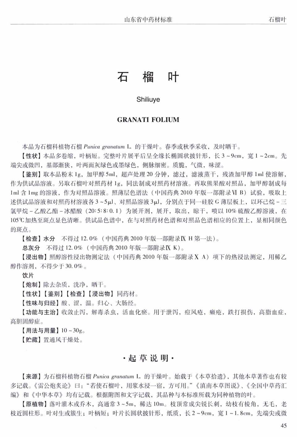 山东省中药材标准 > 石榴叶
