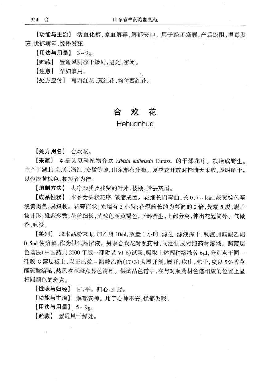 山东省中药炮制规范 > 合欢花