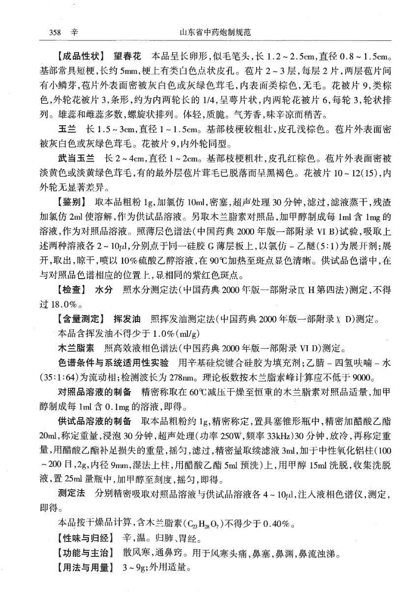 山东省中药炮制规范 > 辛夷