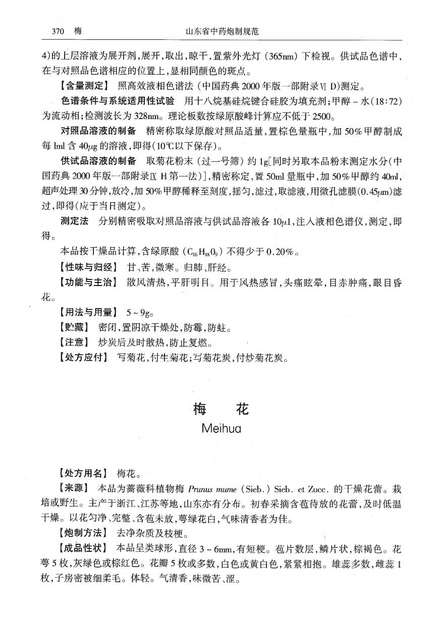 山东省中药炮制规范 > 菊花