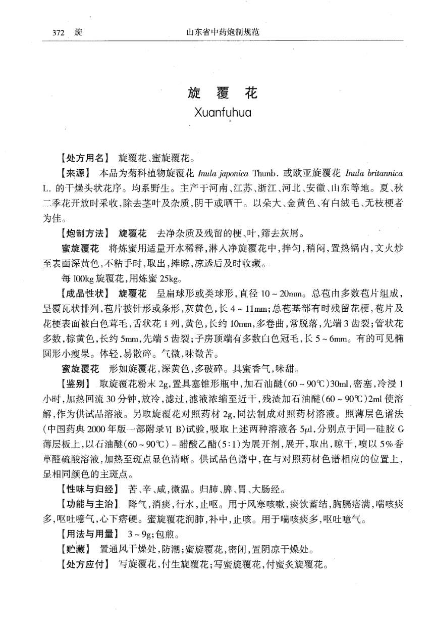山东省中药炮制规范 > 旋覆花