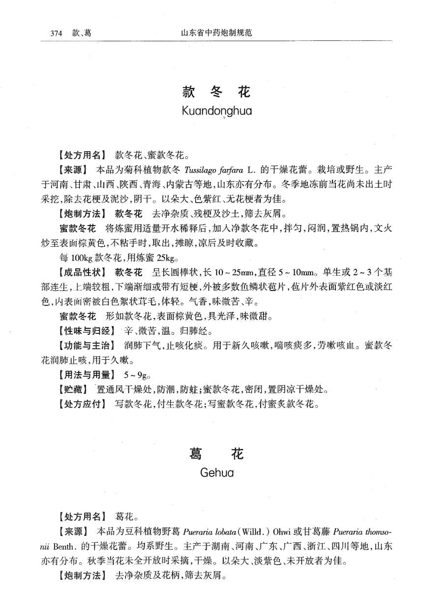 山东省中药炮制规范 > 葛花