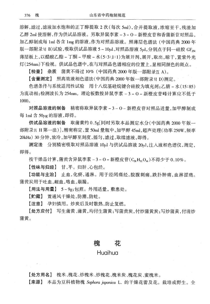 山东省中药炮制规范 > 槐花