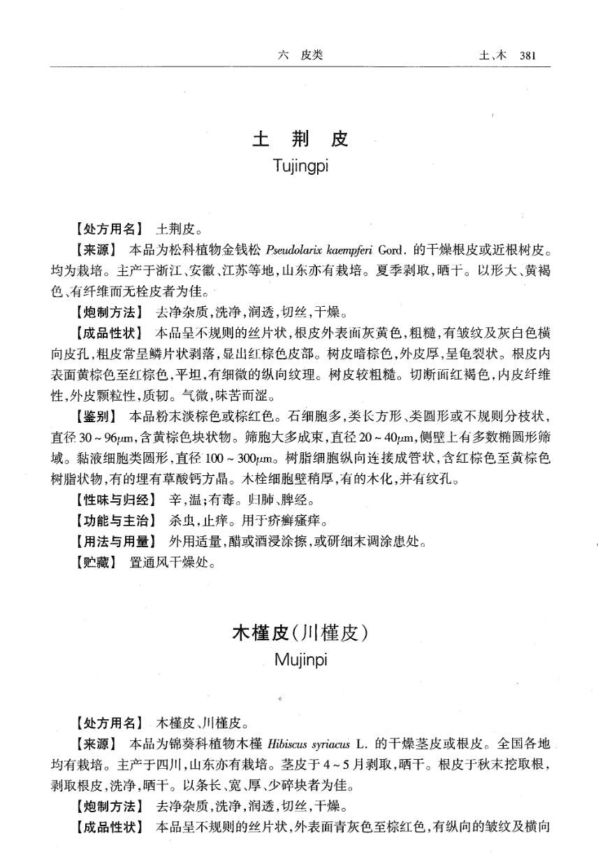 山东省中药炮制规范 > 木槿皮(川槿皮)