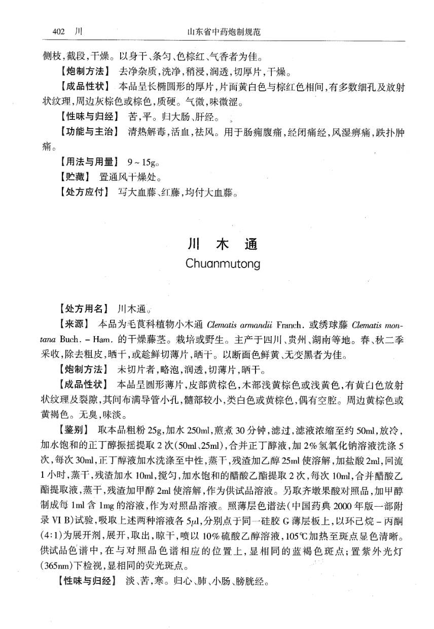 山东省中药炮制规范 > 大血藤