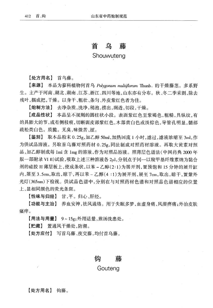 山东省中药炮制规范 > 首乌藤
