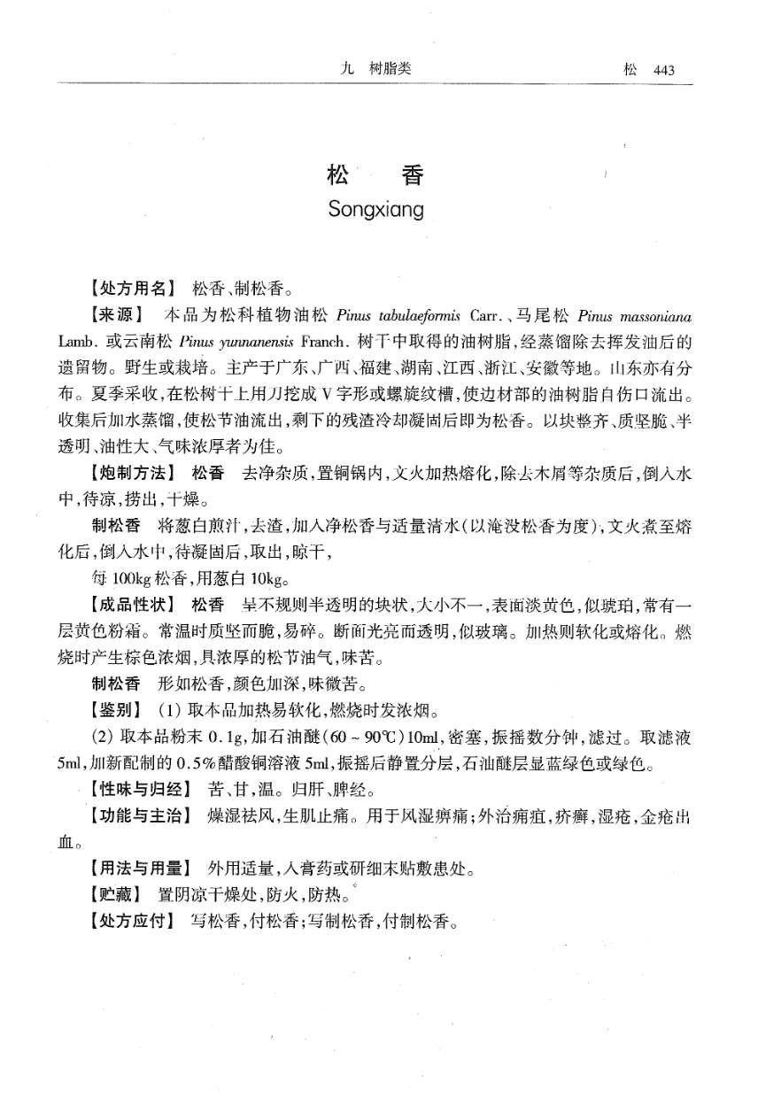 山东省中药炮制规范 > 松香