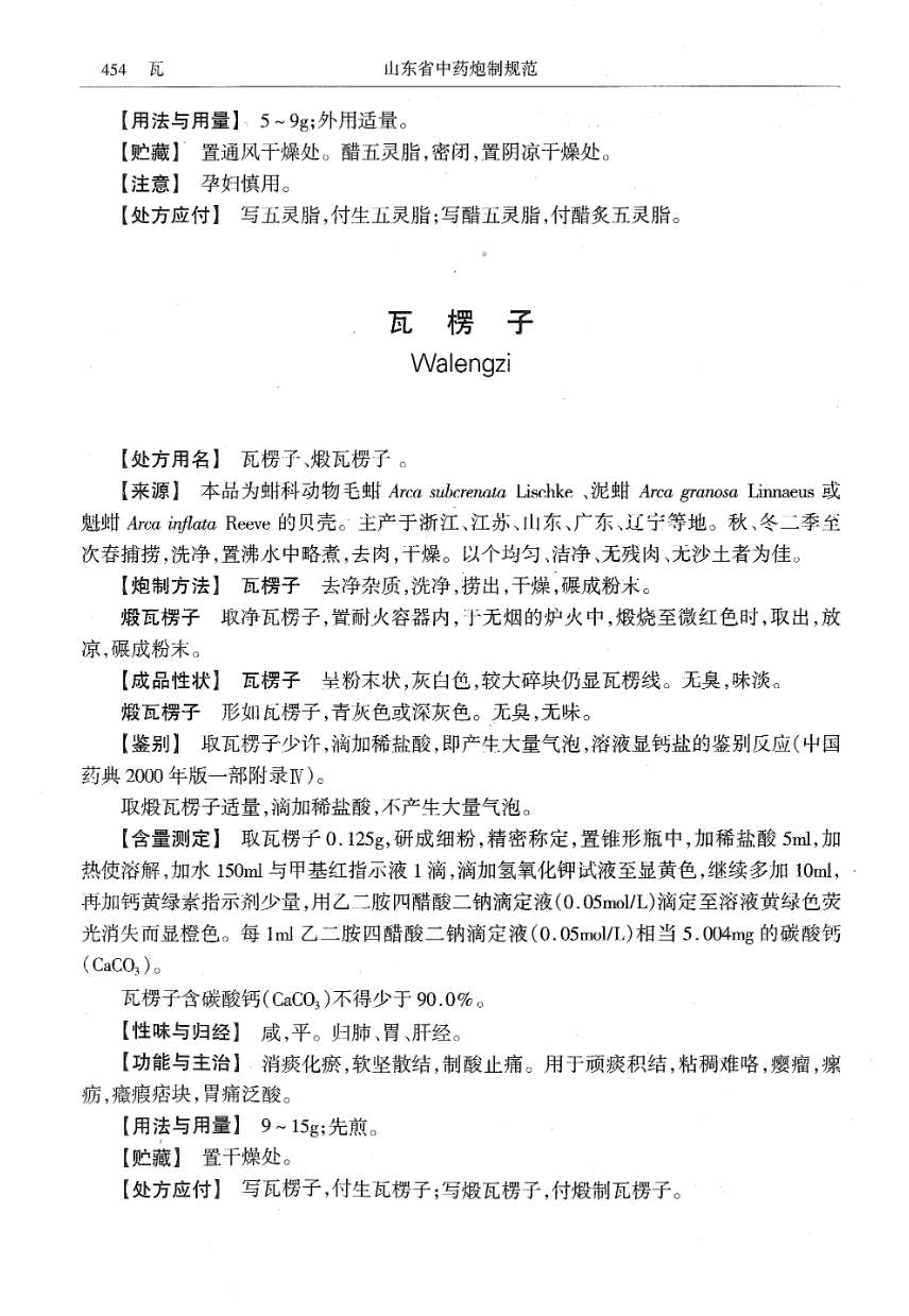 山东省中药炮制规范 > 瓦楞子
