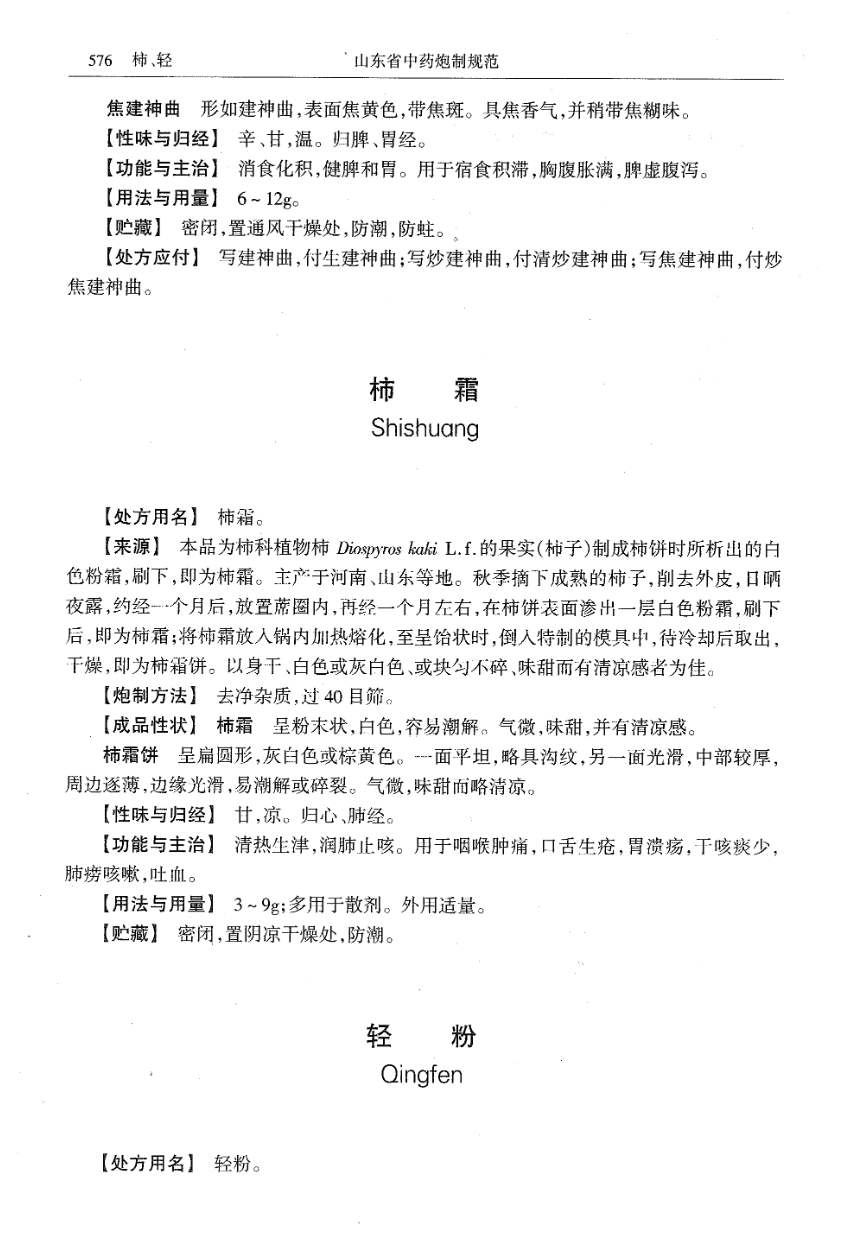 山东省中药炮制规范 > 柿霜