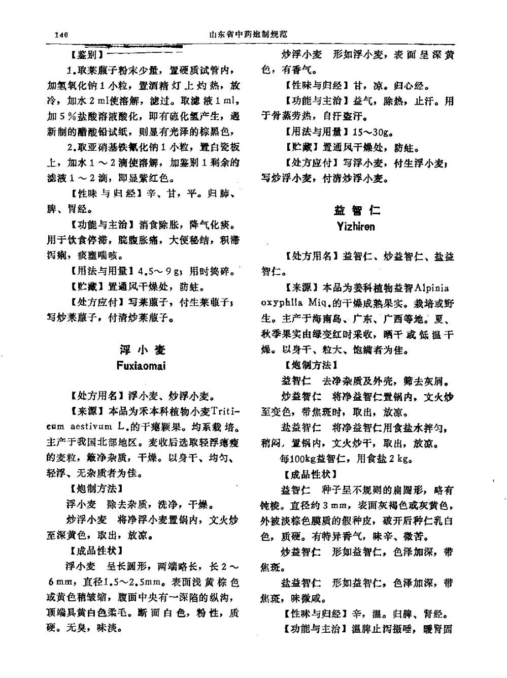 (山东省中药炮制规范 - 1990年版)