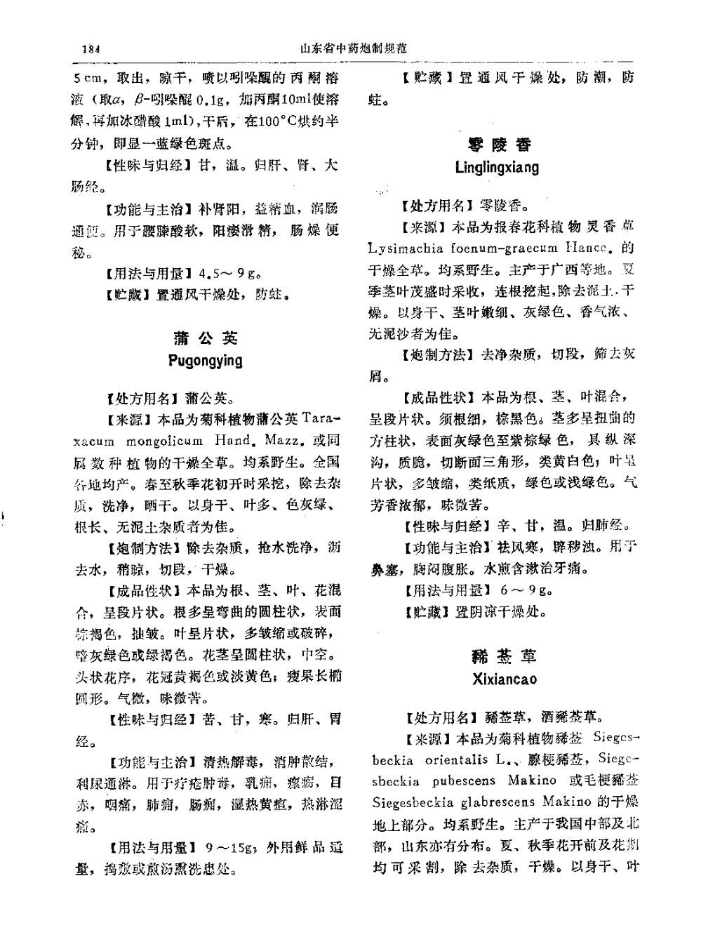 山东省中药炮制规范 > 零陵香