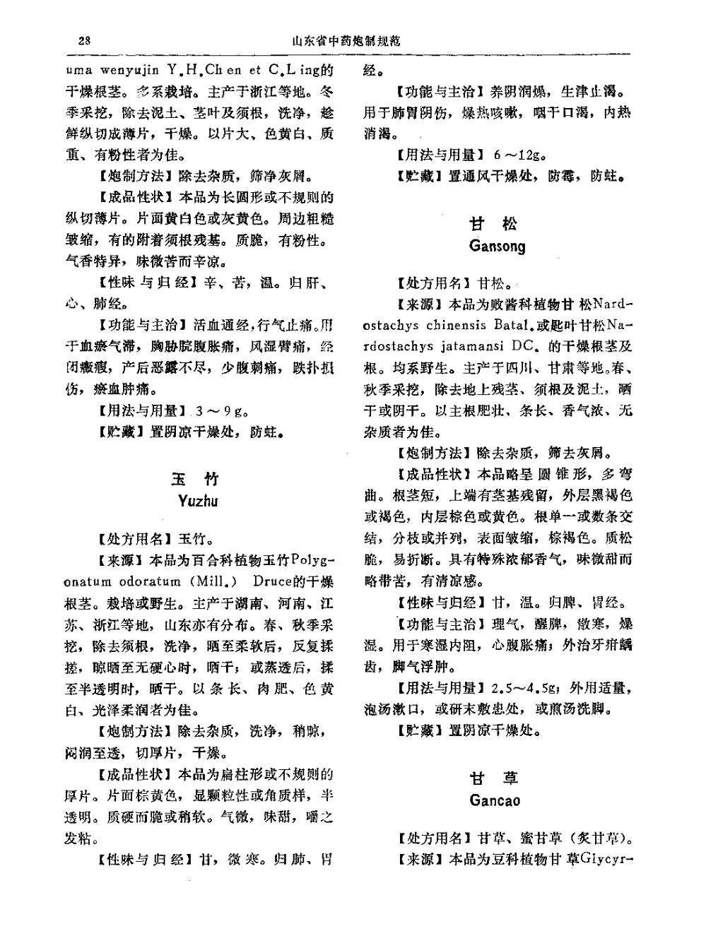 山东省中药炮制规范 > 甘松