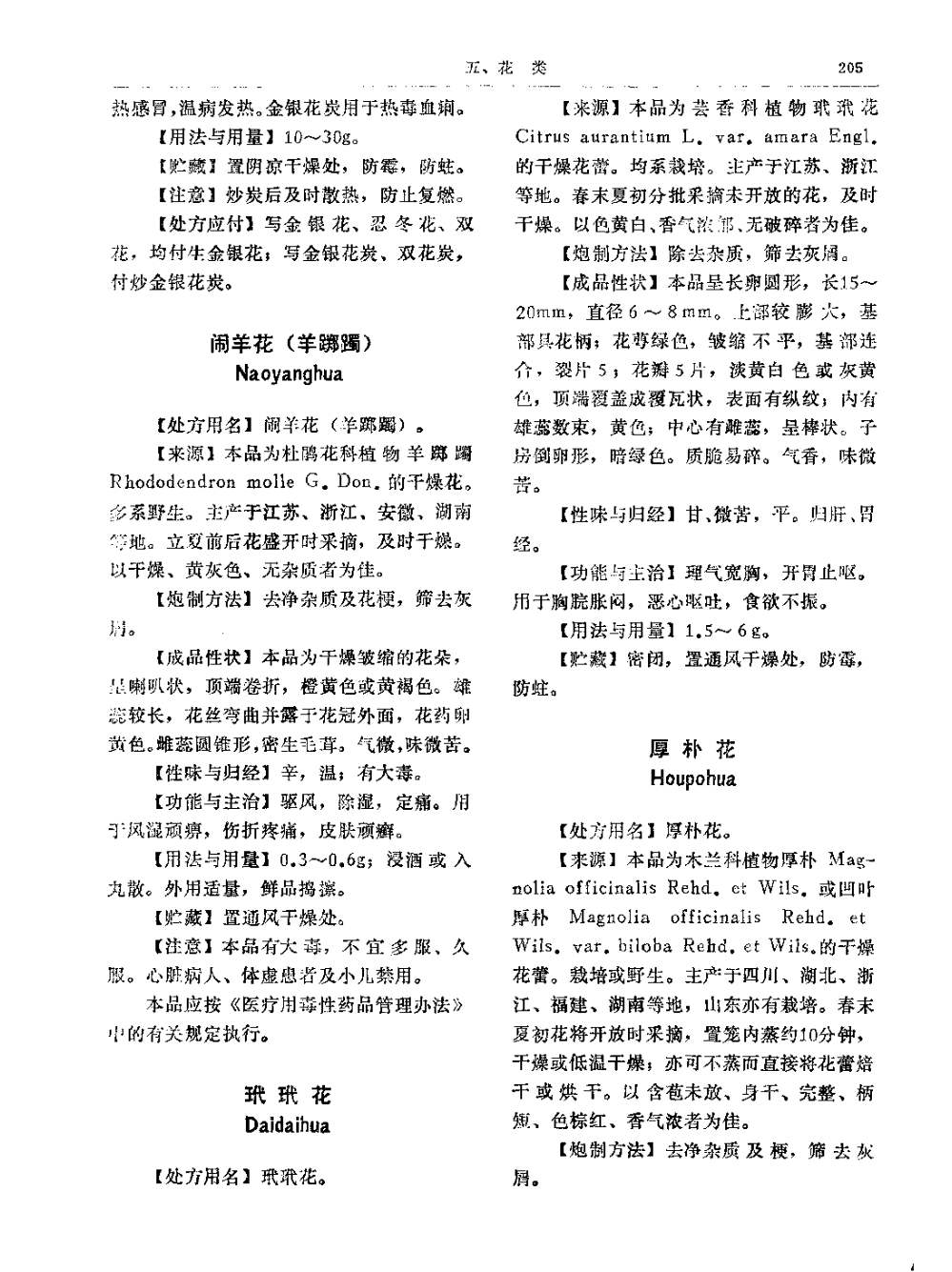 山东省中药炮制规范 > 闹羊花(羊踯躅)