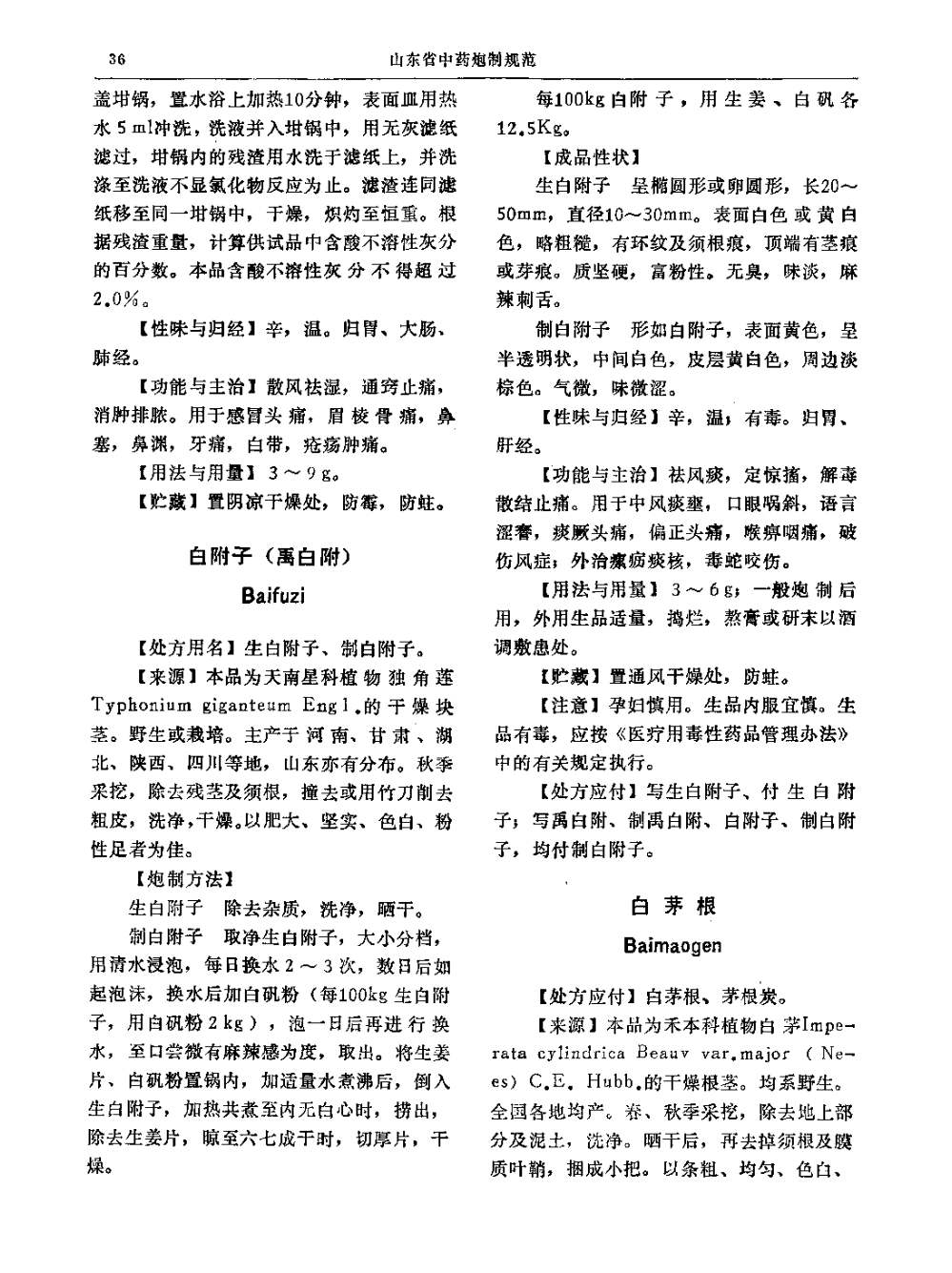 (山东省中药炮制规范 - 1990年版)