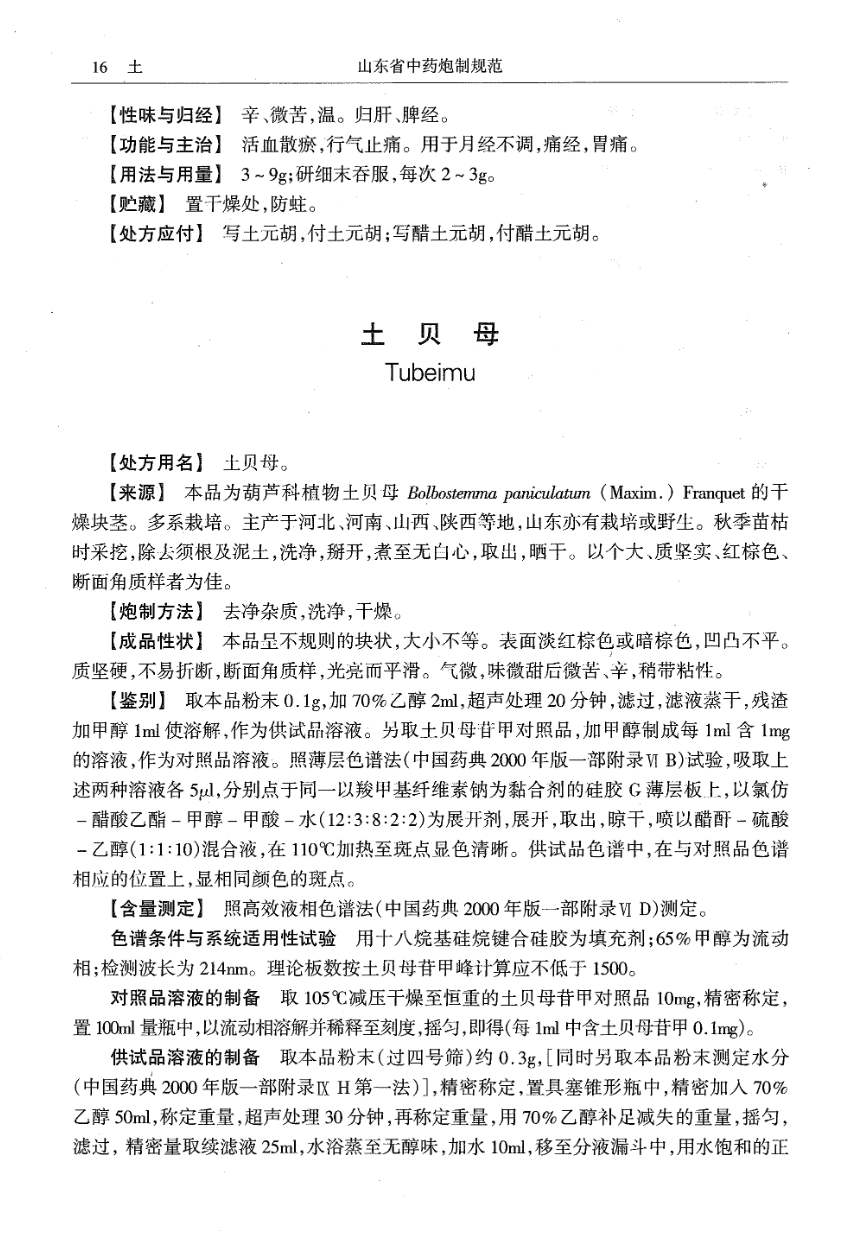 山东省中药炮制规范 > 土贝母