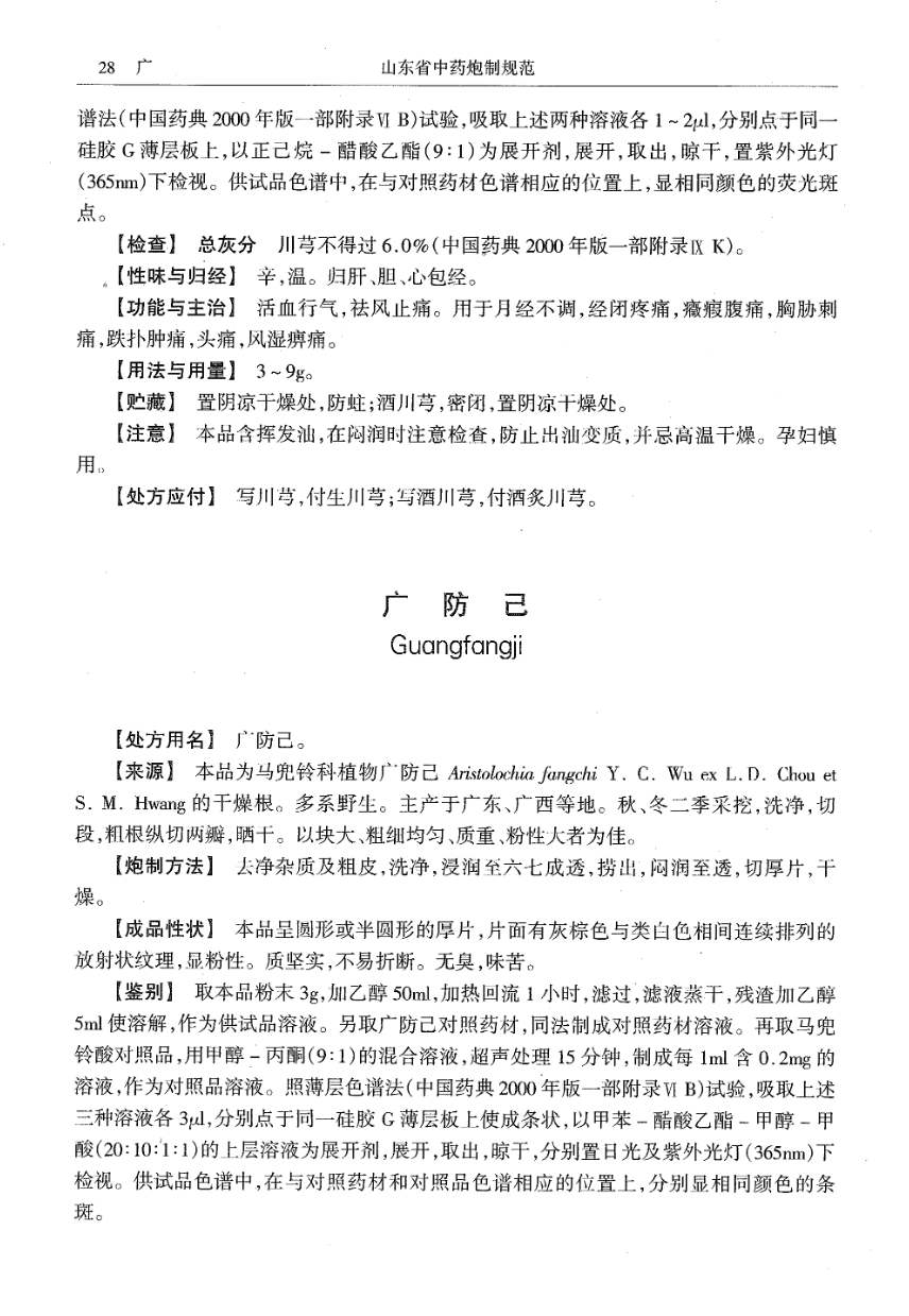 山东省中药炮制规范 > 广防己