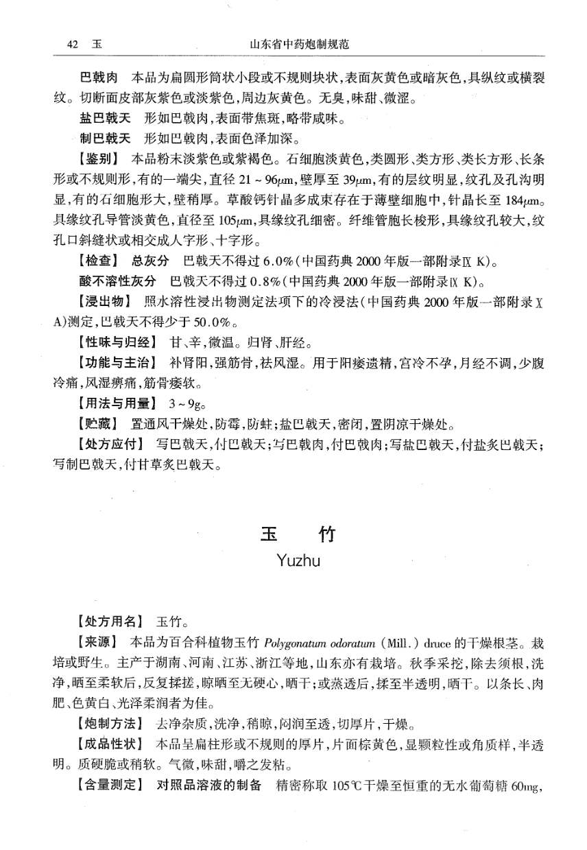 山东省中药炮制规范 > 巴戟天