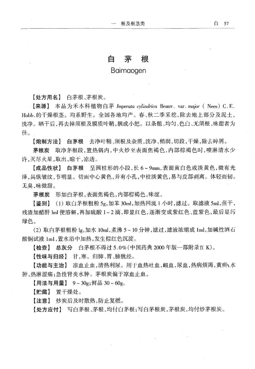 山东省中药炮制规范 > 白茅根