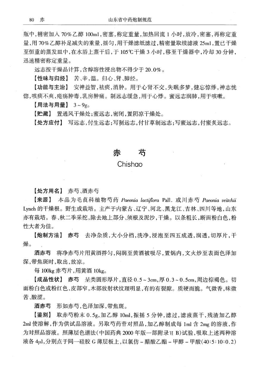 山东省中药炮制规范 > 赤芍