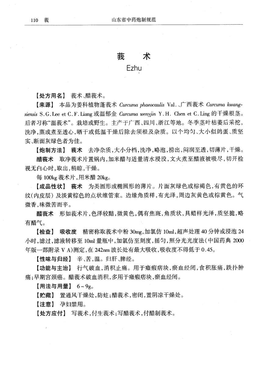 山东省中药炮制规范 > 莪术